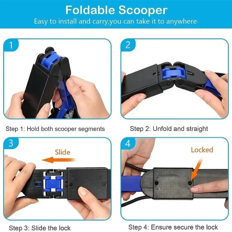 Dog Feces Grabber Long Handle Foldable Stainless Steel Poop Shovel Adjustable Scooper Portable No Bend Rust Proof Detachable Lig